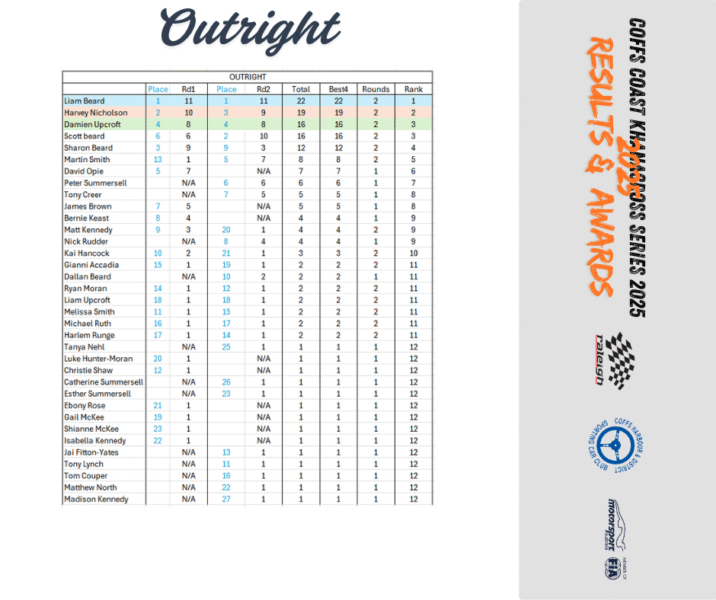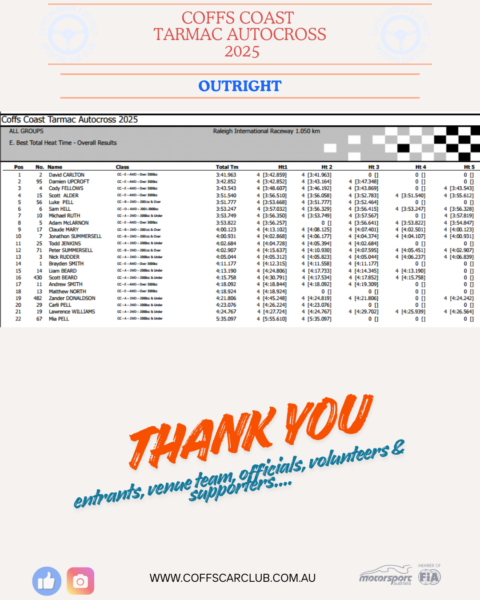 The competitors (what a well behave bunch you were!) Volunteers, Officials, Chris & Helen of Raleigh Raceway for their support and assistance, Dieter our first responder, Felix for his marshalling skills, Ian for his multitasking! John for his flexibility, Stacey and her team (the food was amazing!) Archie our hero on standby (no one needed recovery!) and finally Tony for doing what must be done.