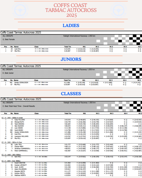 Note: There was an issue with SpeedHive MyLaps upload (on their end) which is being worked on. The results shown below are correct.