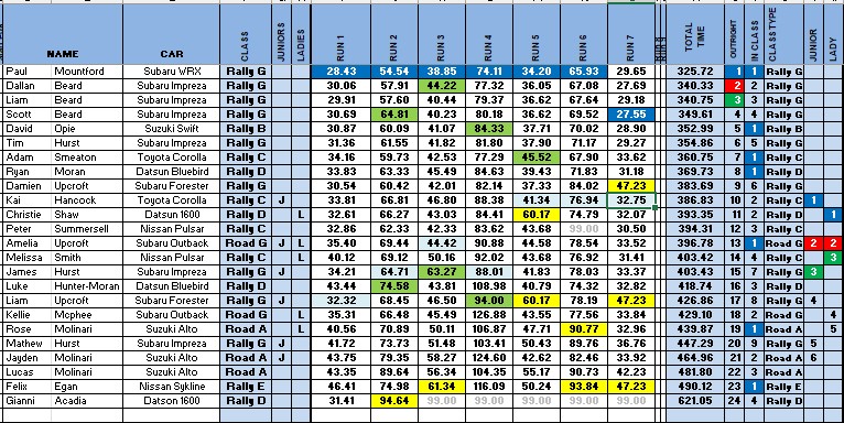 Paul Mountford set a cracking pace though and held onto first throughout the day, setting the quickest time on most of the runs. Perhaps someone should check him for pace notes 🙂